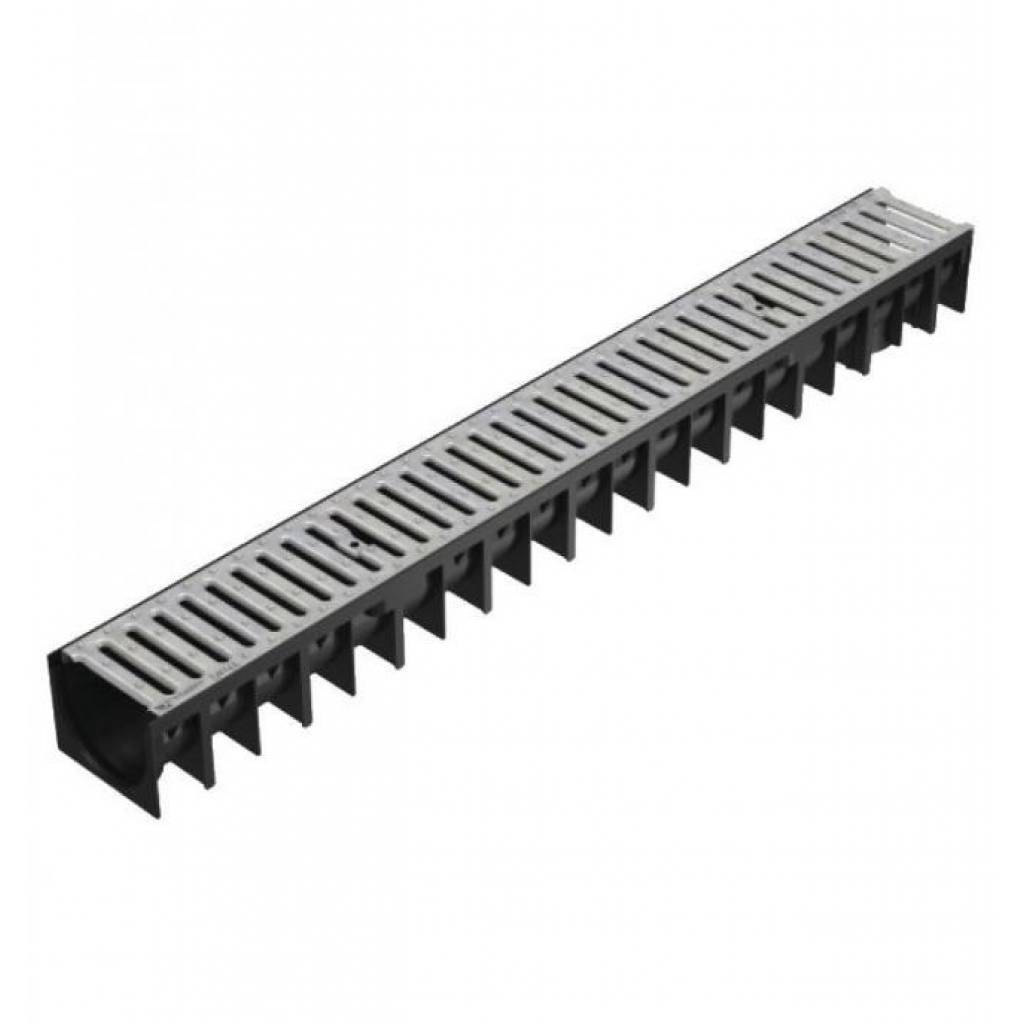 Caniveau polypropylène Long. 100 x Larg. 12 xH. 9,2 cm+grille acier galvanisé