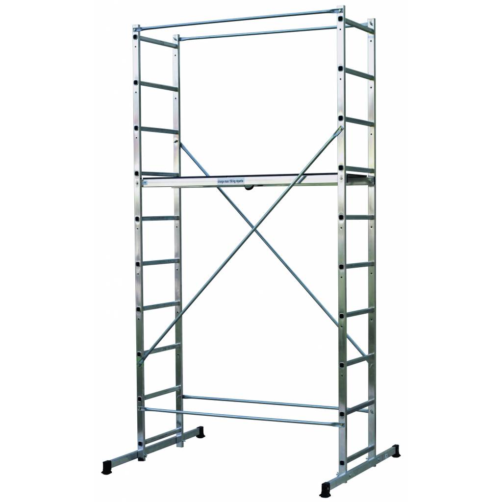 Structure en aluminium. Plateau en bois antidérapant. Charge utile max. : 150 kg. Hauteur de travail max. : 4 m. Dim. du plateau : 130 x 46 cm. Hauteur du plateau max. : 1,78 m. 5 hauteurs de travail.