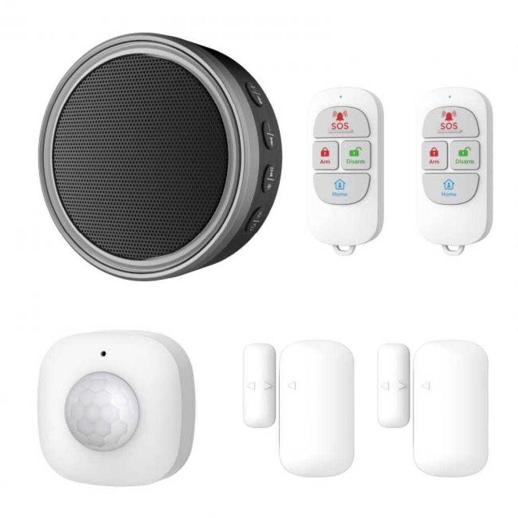 Système d’alarme Wifi 2.4 GHz avec technologie radio 868MHz pour une surveillance à distance via l’application TuyaSmart smartphone, sirène 90dB,détecteur de mouvement et ouverture, flash LED.