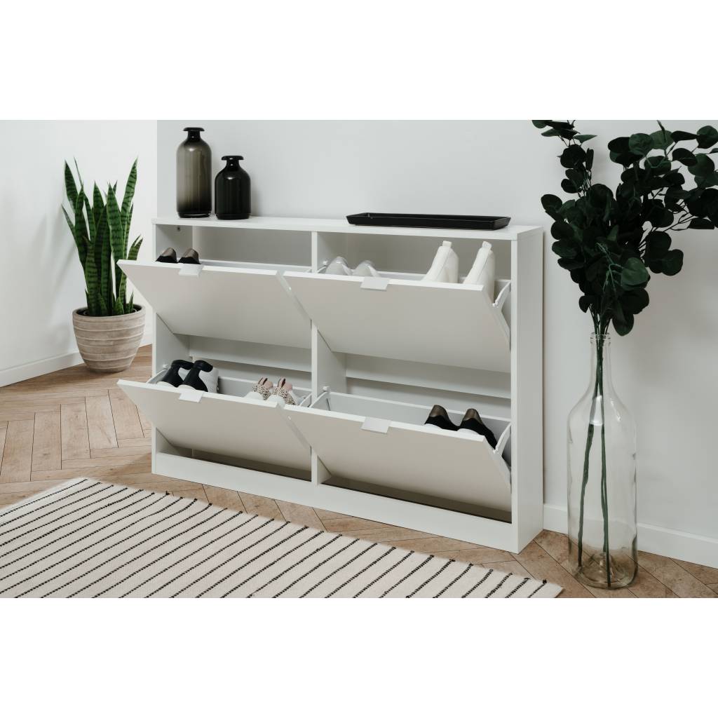 Meuble à chaussures avec 4 abattants , dimensions L x H x P env.: 116 x 75 x 17 cm, panneaux à particules