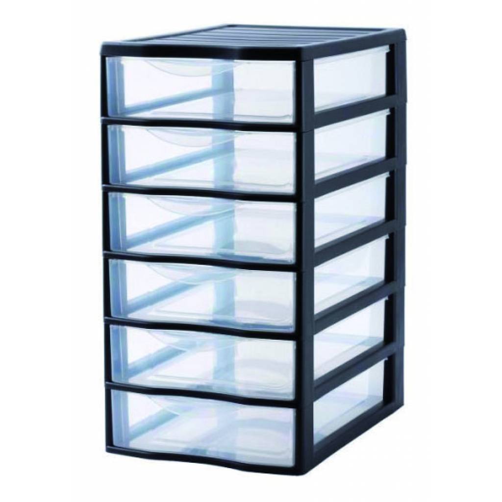 Tour de rangement équipée de 6 tiroirs format A4 en polypropylène de coloris noir.